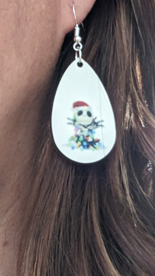 Earrings - Double sided sublimated Christmas Jack on silver hook