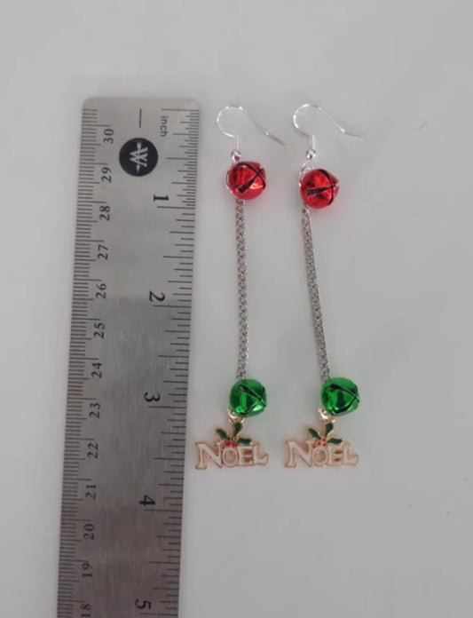Earrings - Noel with Two Jingle Bells on Silver Chain Drop Hook