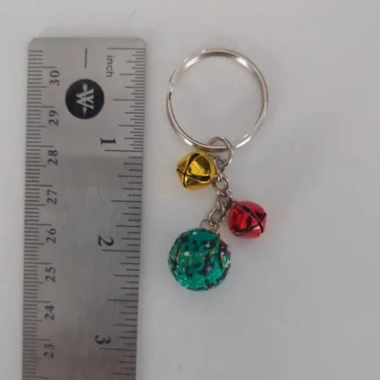 Keychain - Christmas charm with two Small Jingle Bells (green and red)
