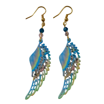 Earrings - Stainless steel fairy wings and beads on gold hook