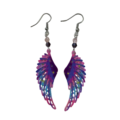 Earrings - Stainless steel fairy wings and beads on silver hook