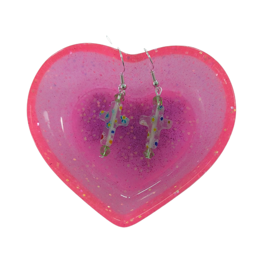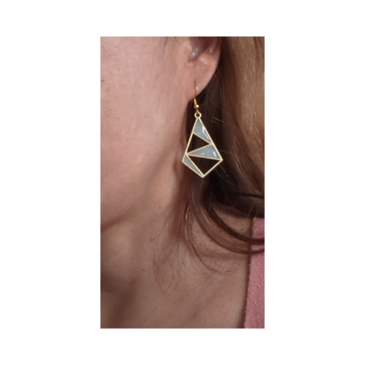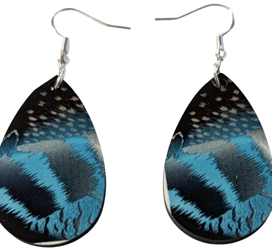 Earrings - Double sided sublimated blue and brown pattern on silver hook