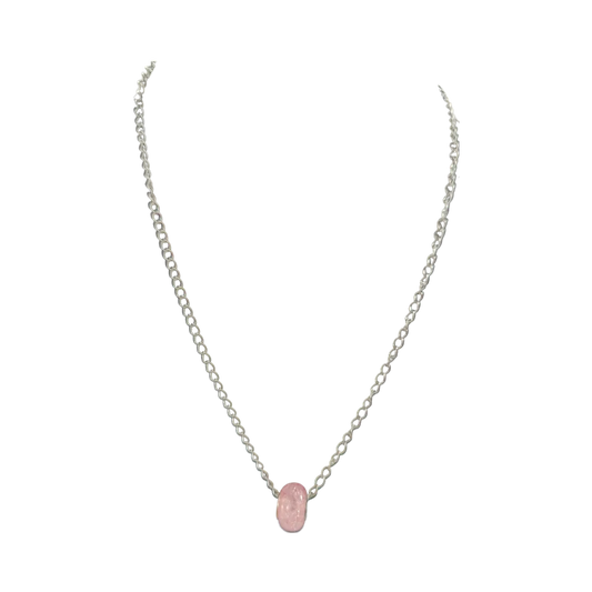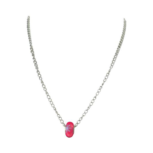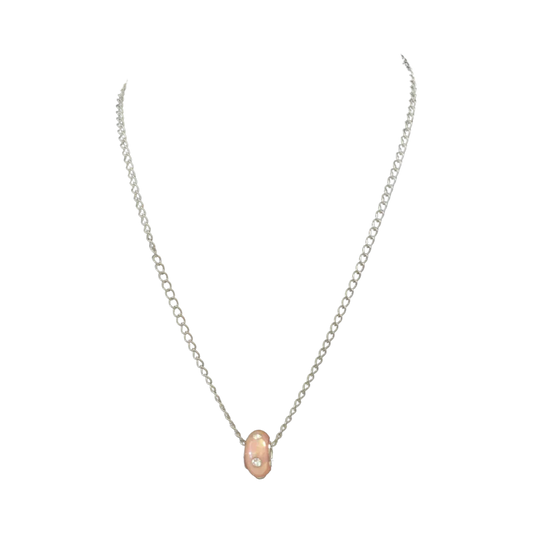 Necklace - 17 inches stainless steel curb chain with European style large hole bead