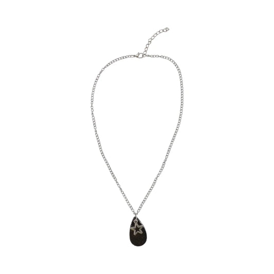 Necklace - 18 inches Antique star silver charm with medium resin tear drop on stainless steel curb chain