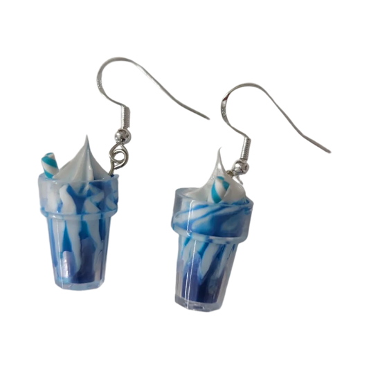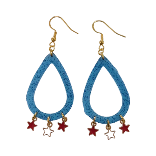 Earrings - Resin Black and red square with silver evil eye charm on silver hook