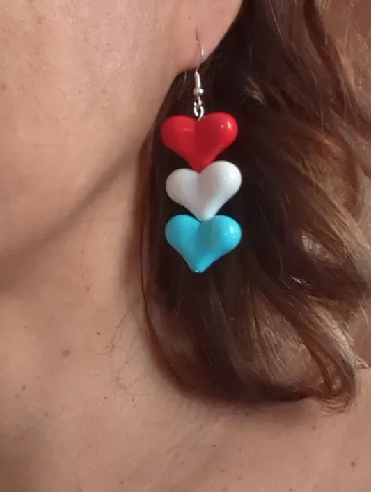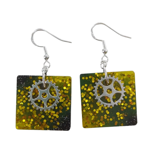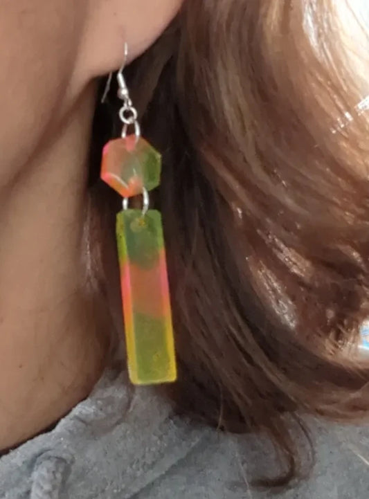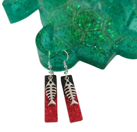 Earrings - Resin black and red rectangle with silver fish scale on silver hook