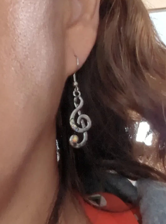 Earrings - Silver cross with silver chain on silver ball post stud earring stud