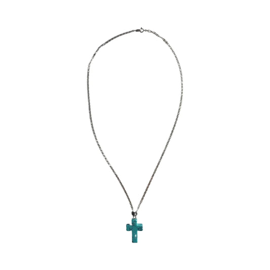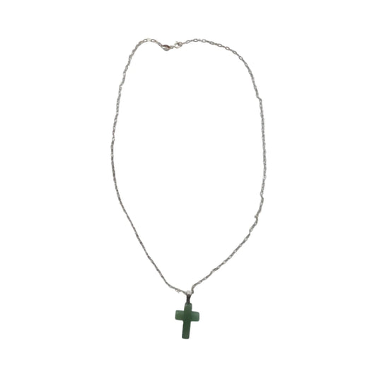 Necklace - 19 inches 925 silver chain with gemstone cross pendant