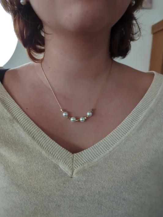 Necklace - 18 inches White pearl with gold spacer beads on gold chain Necklace