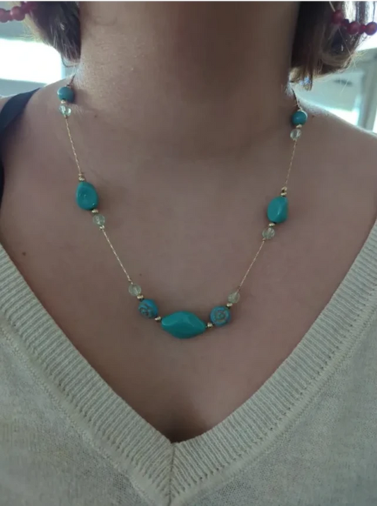 Necklace - 19.5 inches Blue beads and gold spacer beads on gold chain Necklace