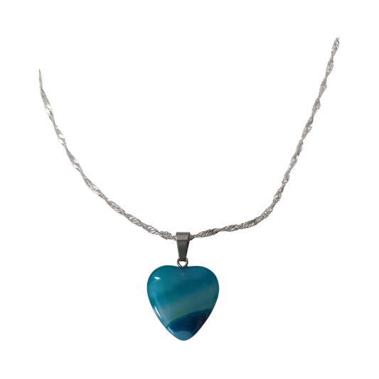 Necklace - 21 inches 925 silver twisted rope chain with natural stripe agate pendant heart shape charm