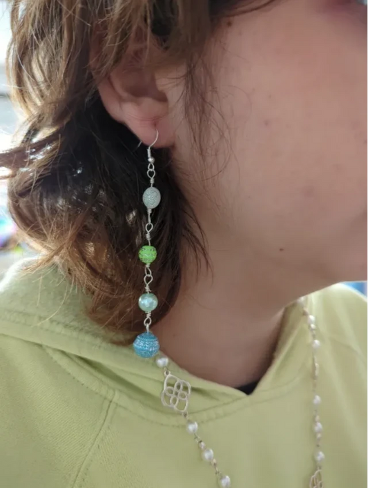 Earrings - Blue, Green, and white bead earrings on silver hook