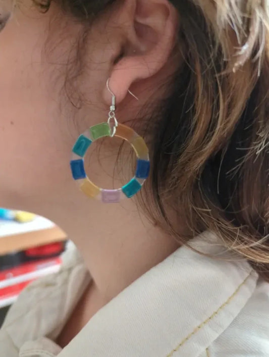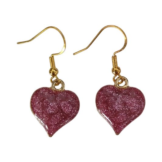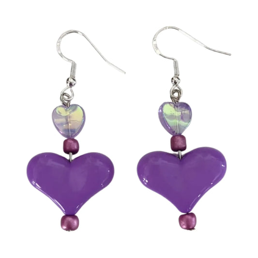 Earrings - Acrylic hearts and beads on silver hook (short)