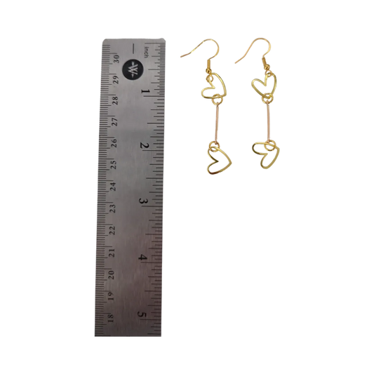 Earrings - Gold Plated Heart Earring Connector 2-Hole Stick Strip Bar Link on gold hook