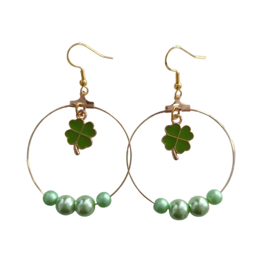 Earrings - Hoops with four leaf clover and green beads on gold hook