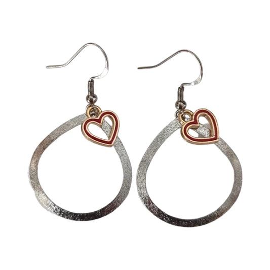 Earrings - Silver tear drop with gold plated heart on silver hook