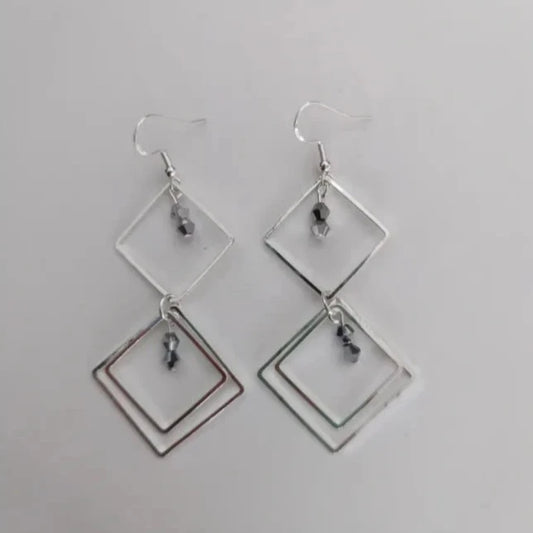 Earrings - Square/Diamond with 4 mm Bi-cone Crystal Beads on hook