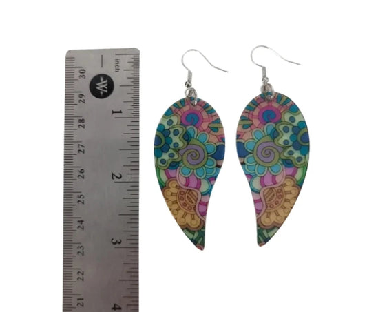Earrings - Acrylic hearts and beads on silver hook (long)