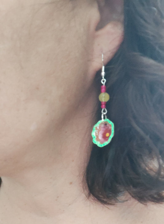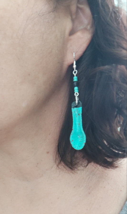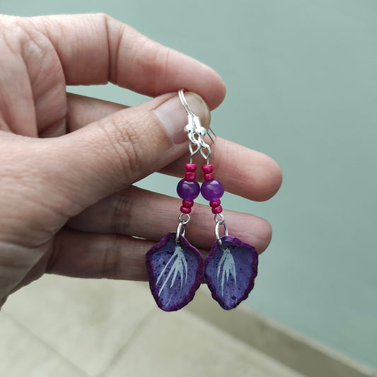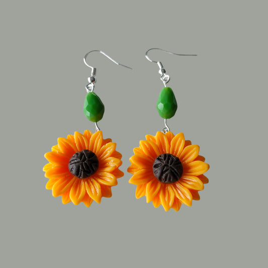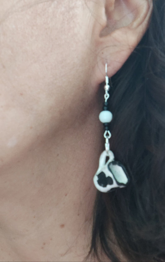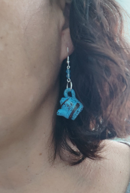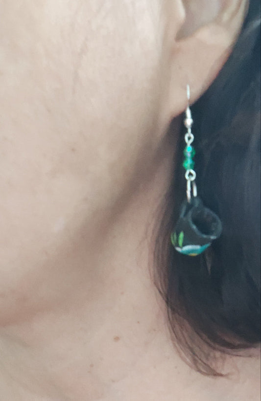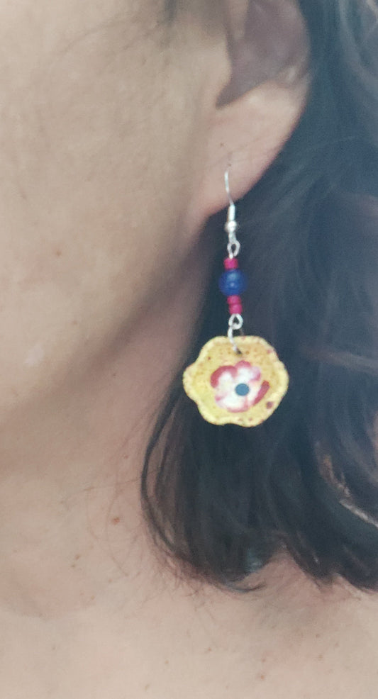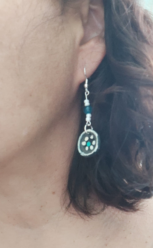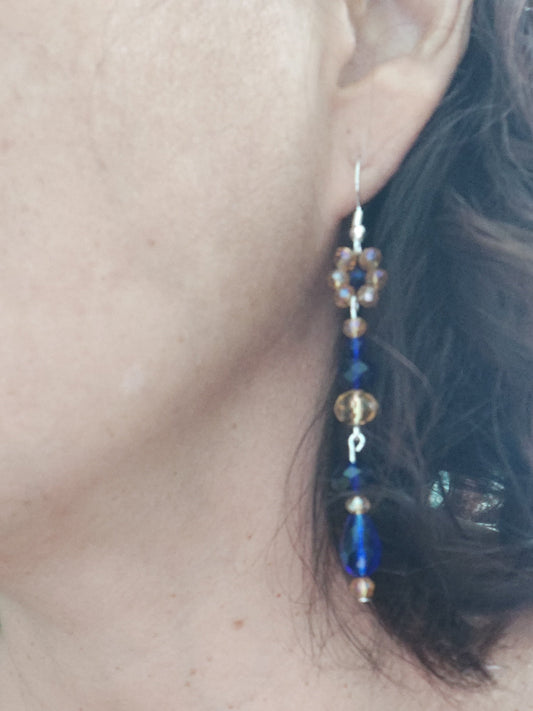 Earrings - Flower gold and navy long bead earrings on silver hook