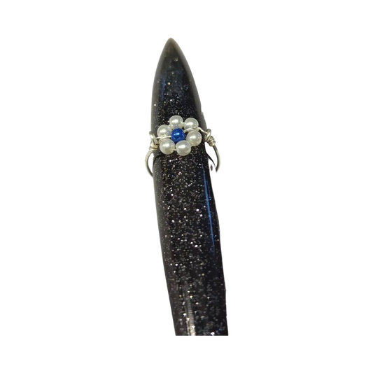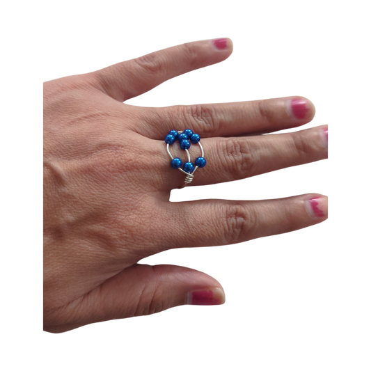 Ring - Fidget 9 royal blue Pearl beads (20 gauge 0.8mm)