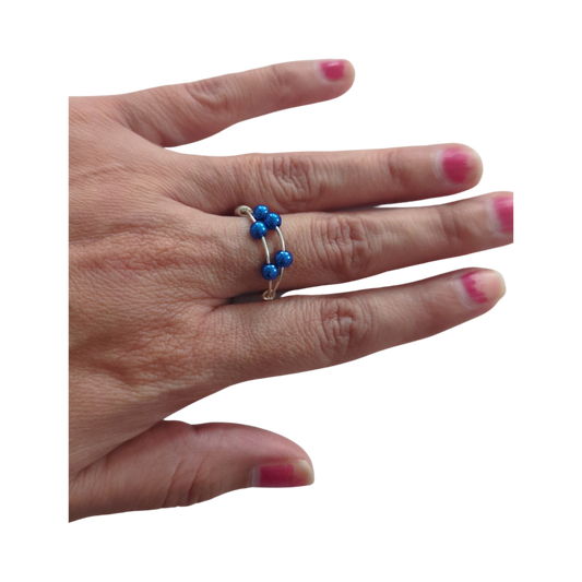 Ring - Fidget 5 royal blue pearl beads (20 gauge 0.8mm)