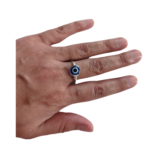 Ring - Evil dark blue eye on silver 22 gauge wire 0.6mm