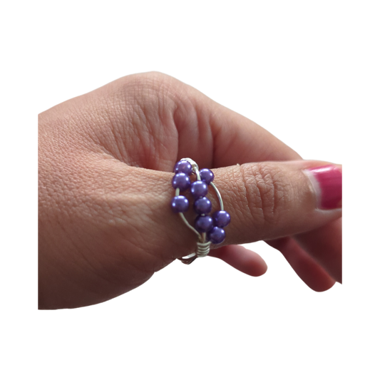 Ring - Fidget 9 purple pearl beads (20 gauge 0.8mm)
