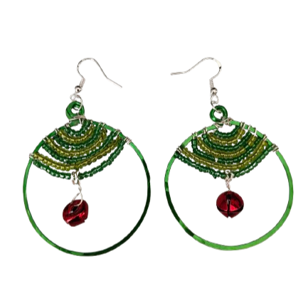 Add some jingle to your style with these unique beaded hoop earrings featuring a jingle bell on a hook. The perfect accessory for a fun and festive look.