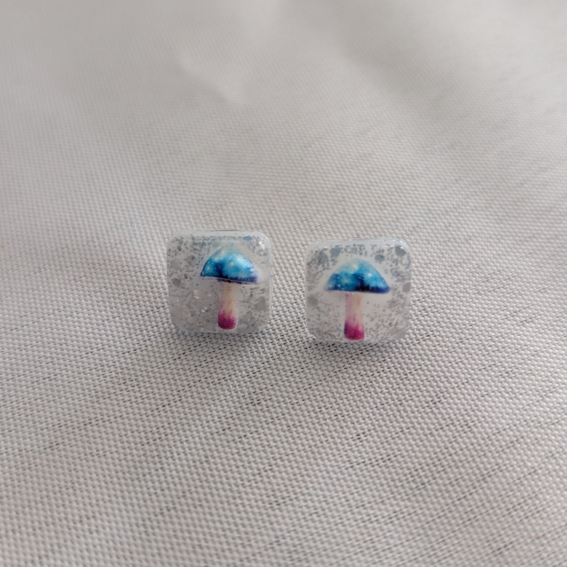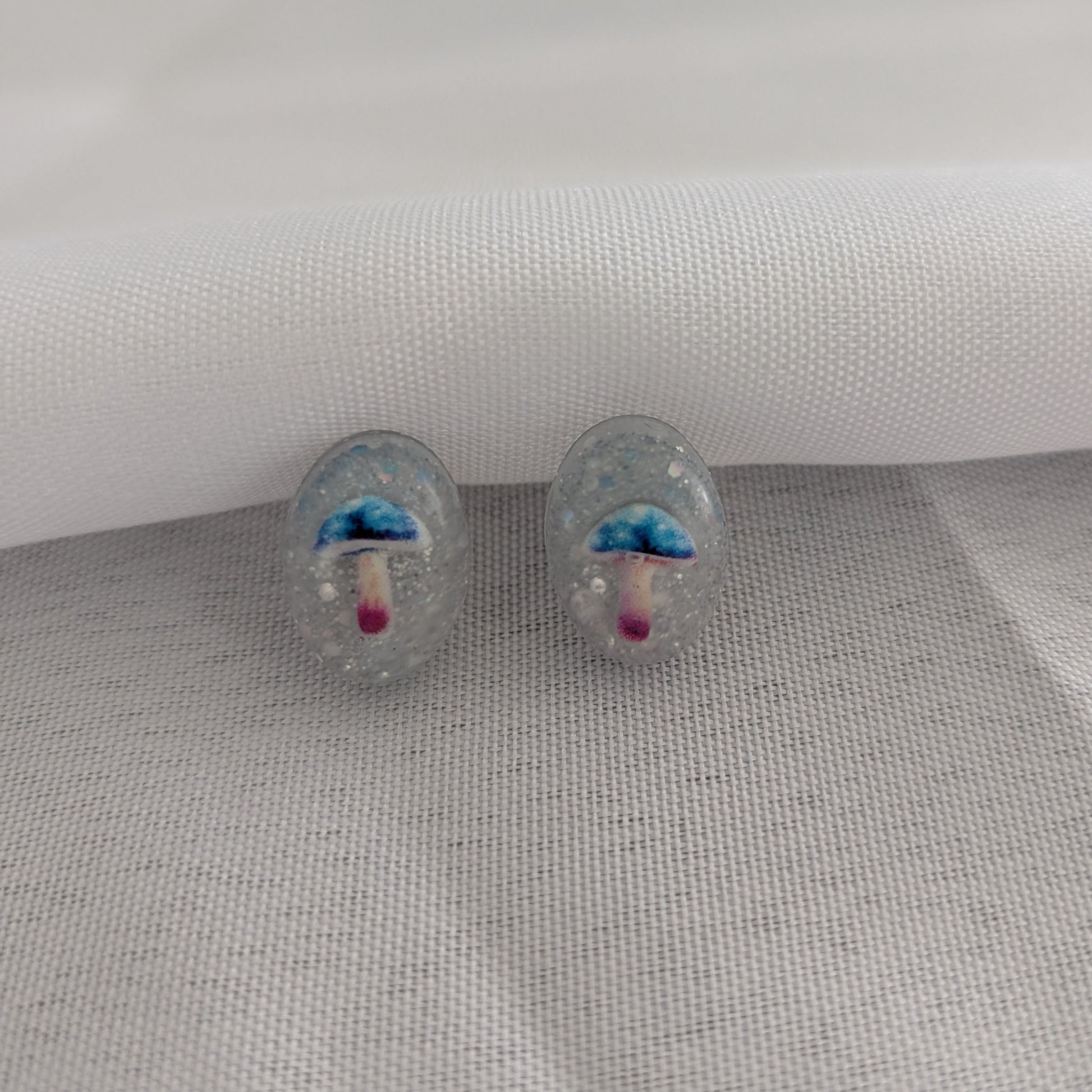 Earrings - Blue Mushroom Resin studs