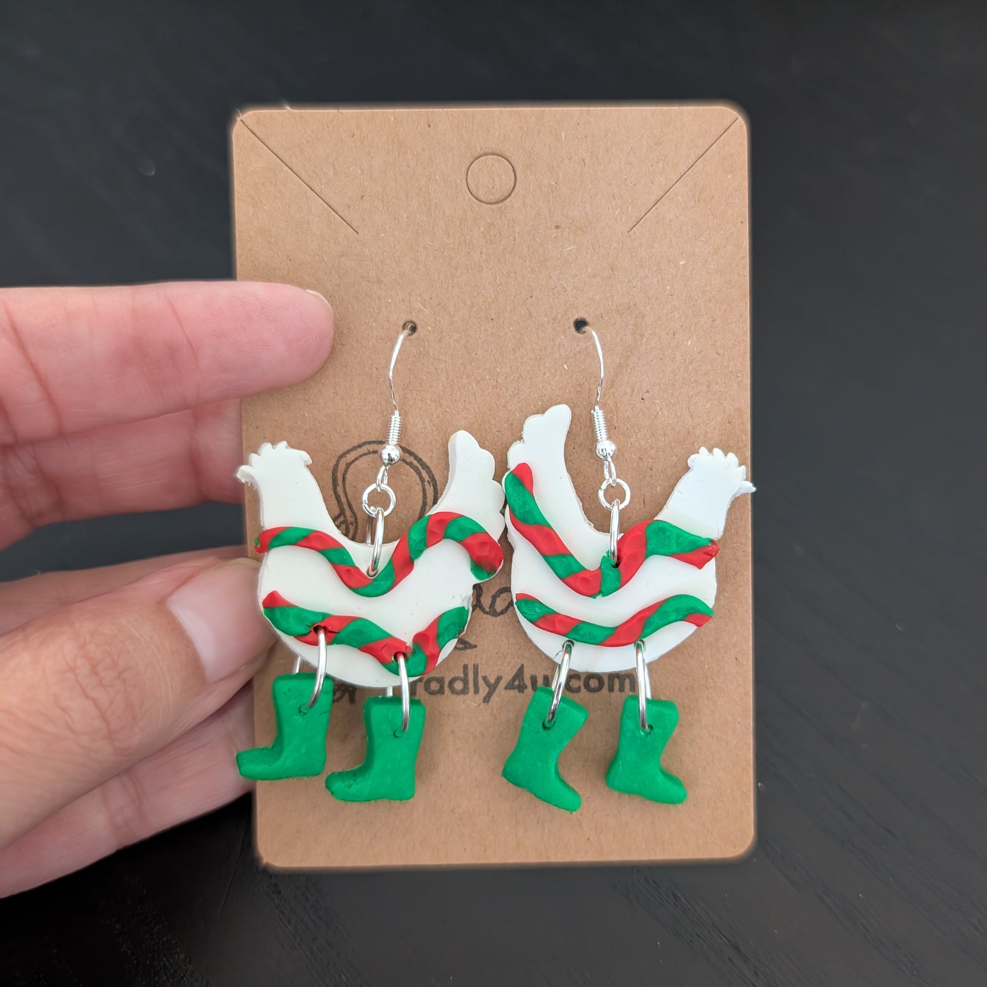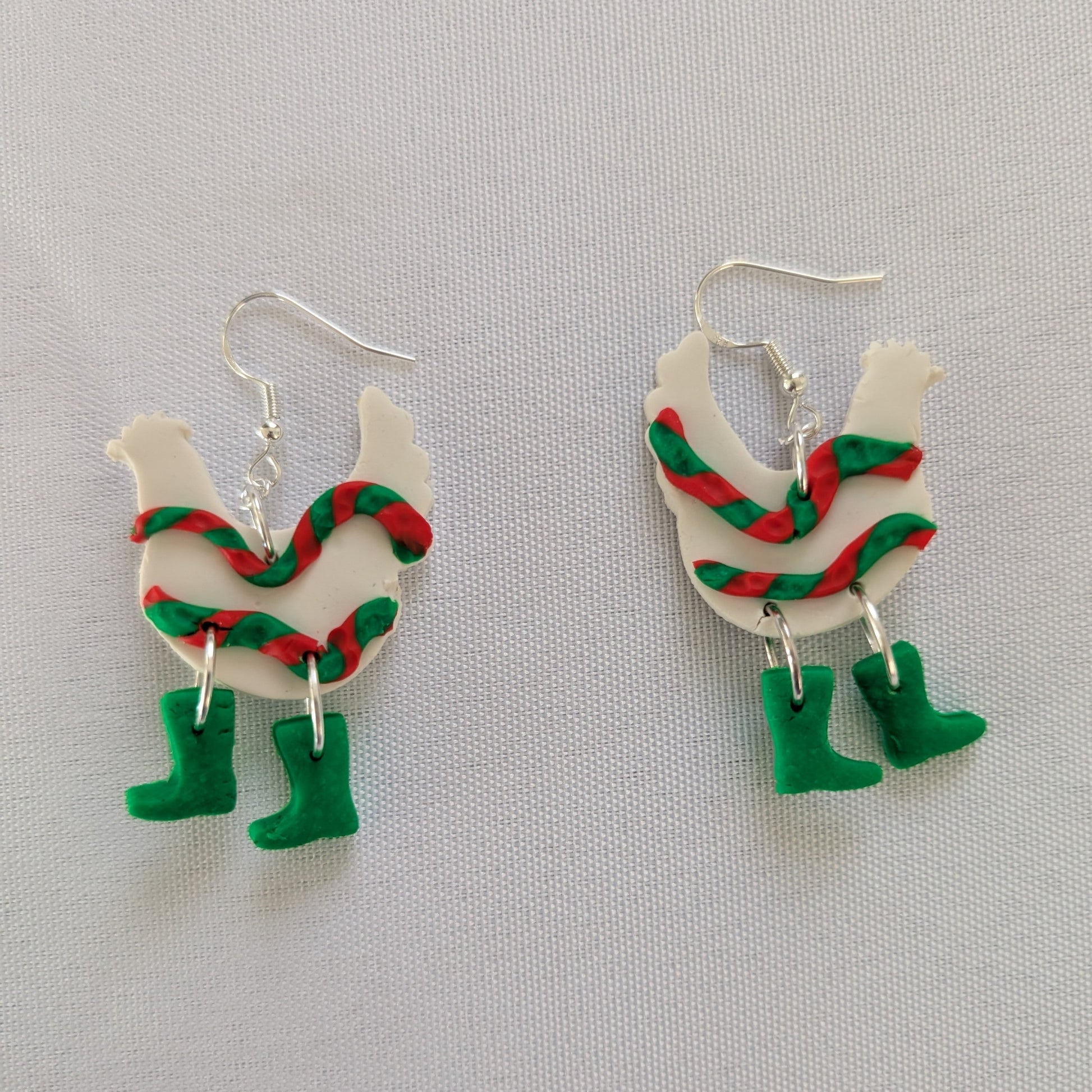Earrings - Polymer Clay Polymer Clay Chicken with boots on 925 sterling silver hook