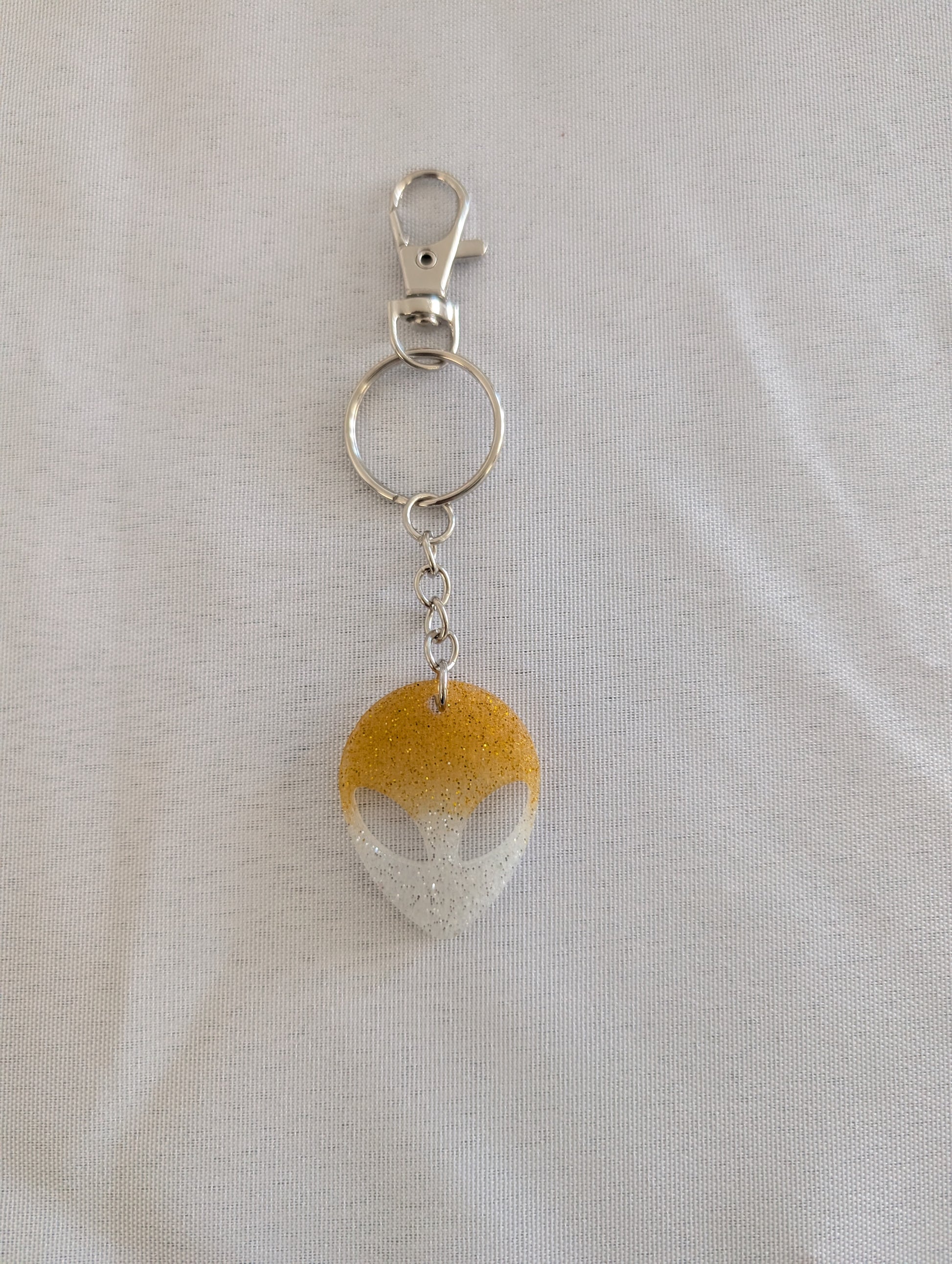 Add an out-of-this-world touch to your keys with our Keychain - Resin alien face. Made with high-quality resin, this keychain is durable and unique. Perfect for sci-fi enthusiasts, it's the perfect accessory to showcase your love for all things extraterrestrial. Elevate your key game now!