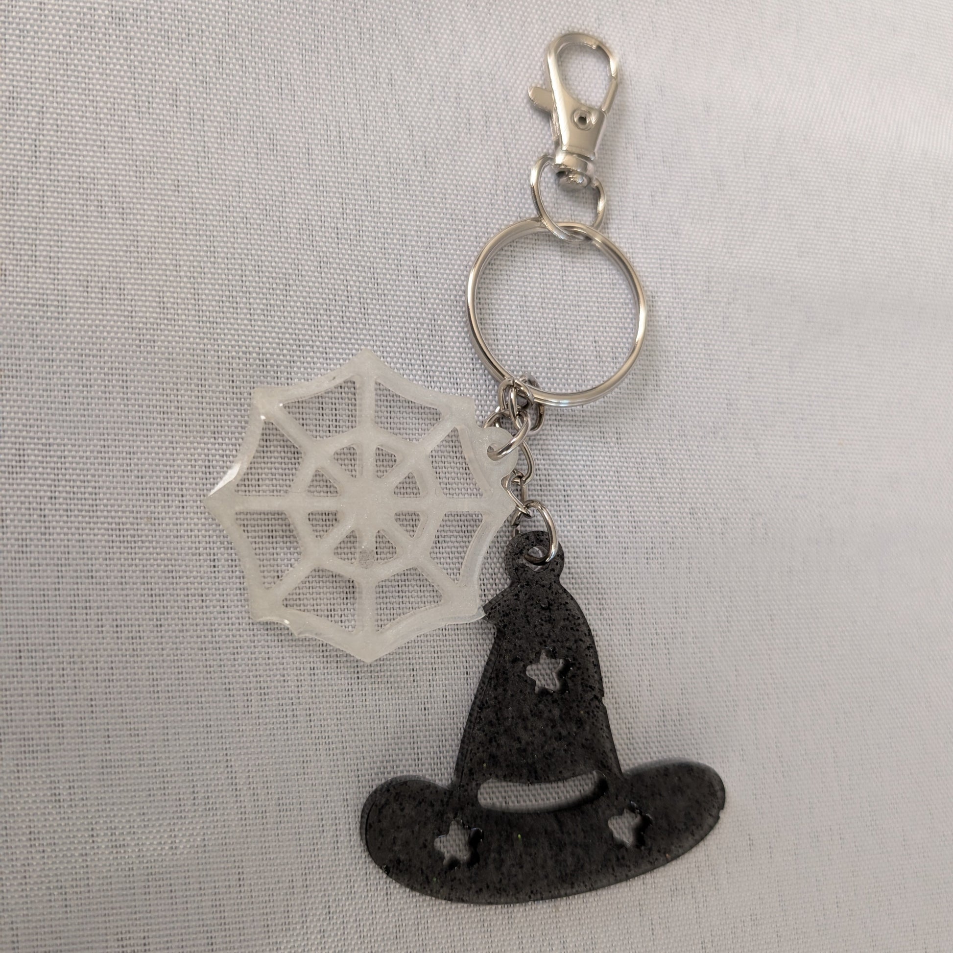 Keychain - Resin witch hat and spider web