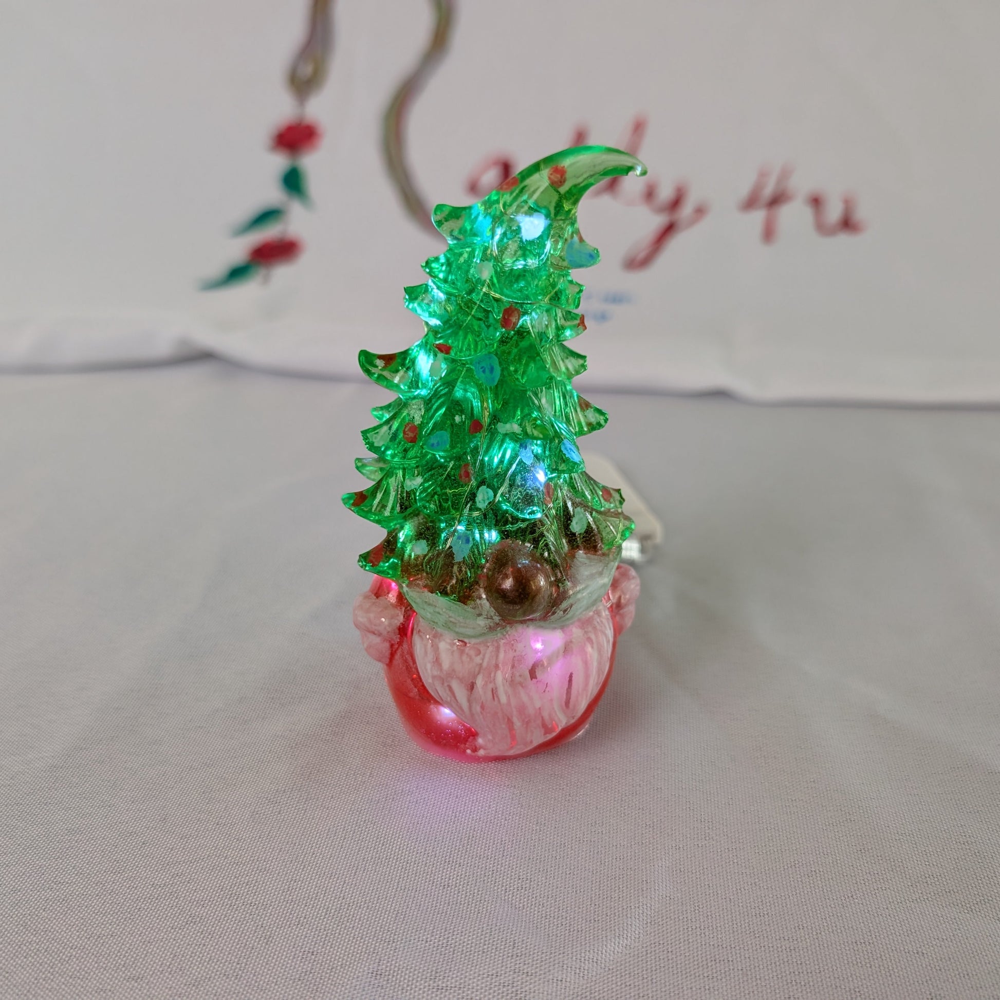 This playful Resin Gnome features a festive Christmas tree hat. You can choose either handcrafted with epoxy resin or eco resin. They are hand-painted with vibrant acrylics. Measuring about 4.5 inches tall and weighing 5.3 ounces, it's a charming knickknack perfect for brightening up your holiday décor or gifting holiday cheer.