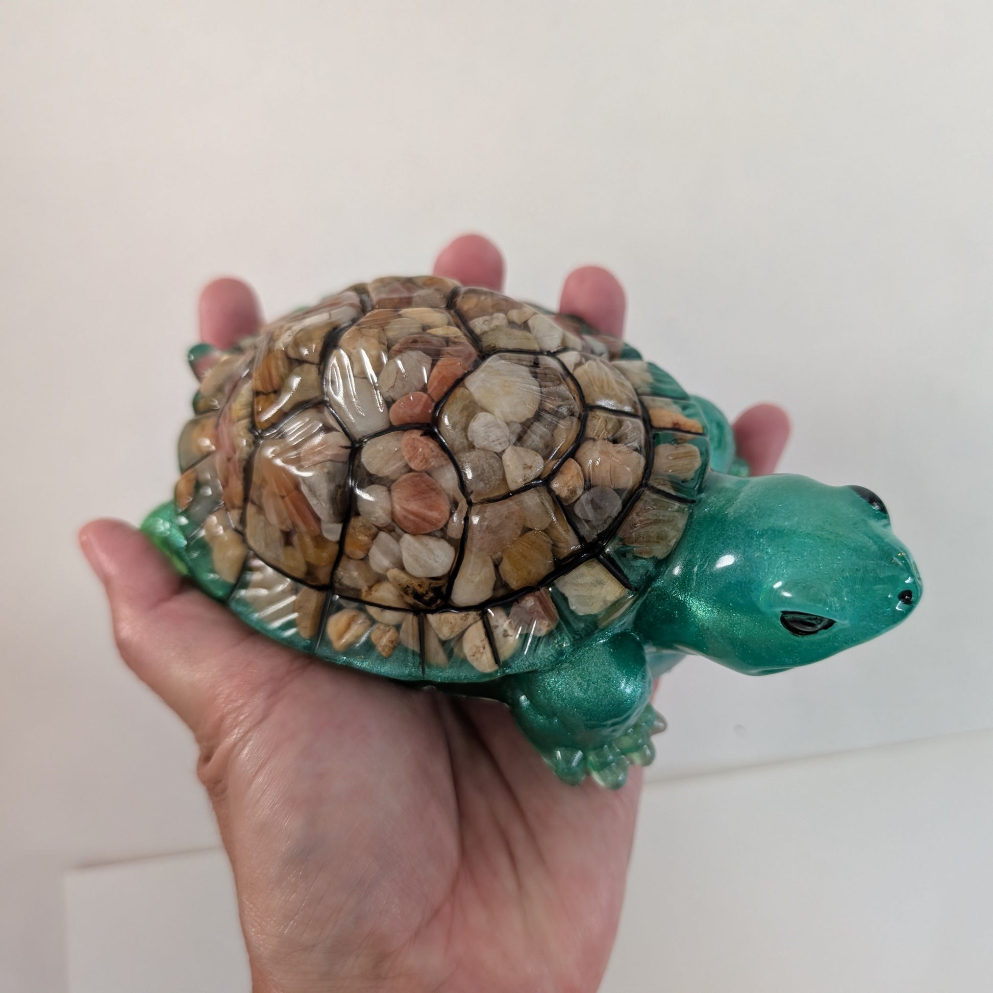 This charming resin turtle knickknack, measuring approximately 3 by 5.5 inches with a height of 2 inches, is a perfect decorative piece for any space. Weighing just 9.3 ounces, it’s lightweight yet sturdy enough to add a touch of nature-inspired elegance to your desk, shelf, or mantel. Its compact size makes it easy to place anywhere, enhancing your decor with subtle character and charm.