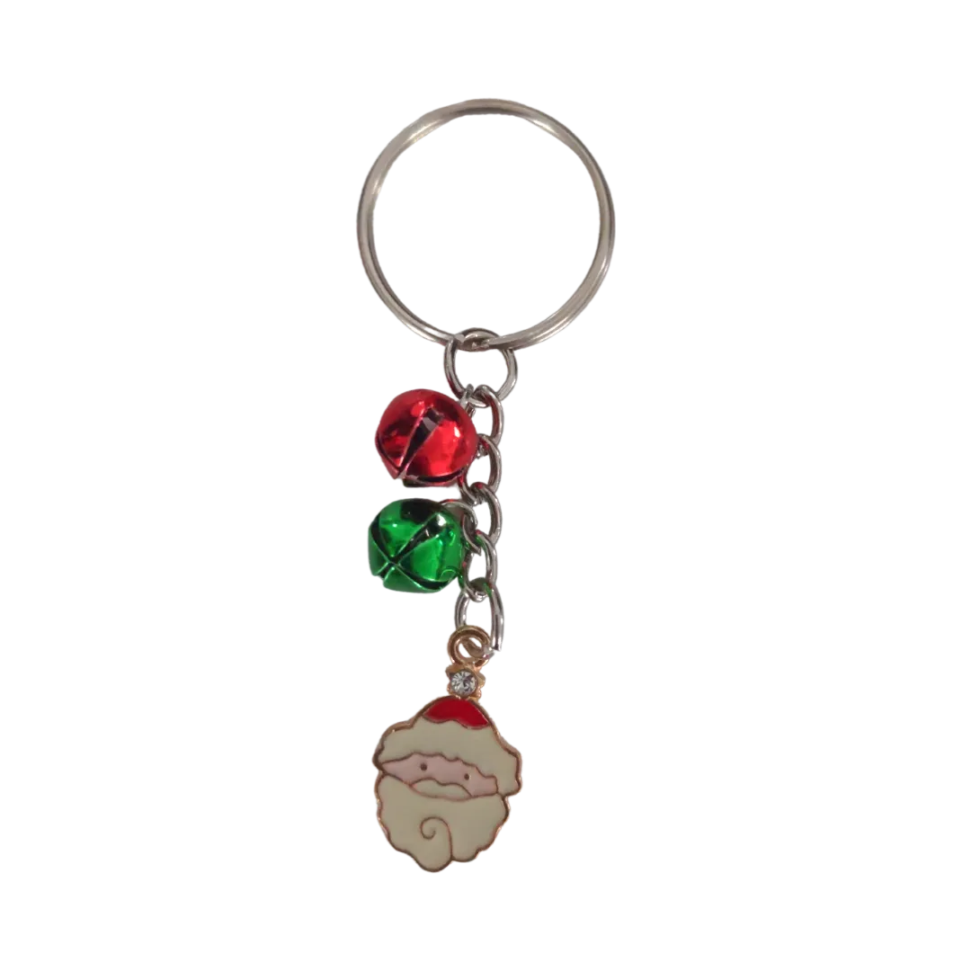 Holiday Custom crafted keychain. These Holiday keychains are great gifts for the Holiday Season. Choose Christmas Charm (mitten, Santa clause, reindeer) One Christmas Charm Two small jingle bells (green and red) keychain length is approximately 2.5 in Keychain weigh 0.1 oz