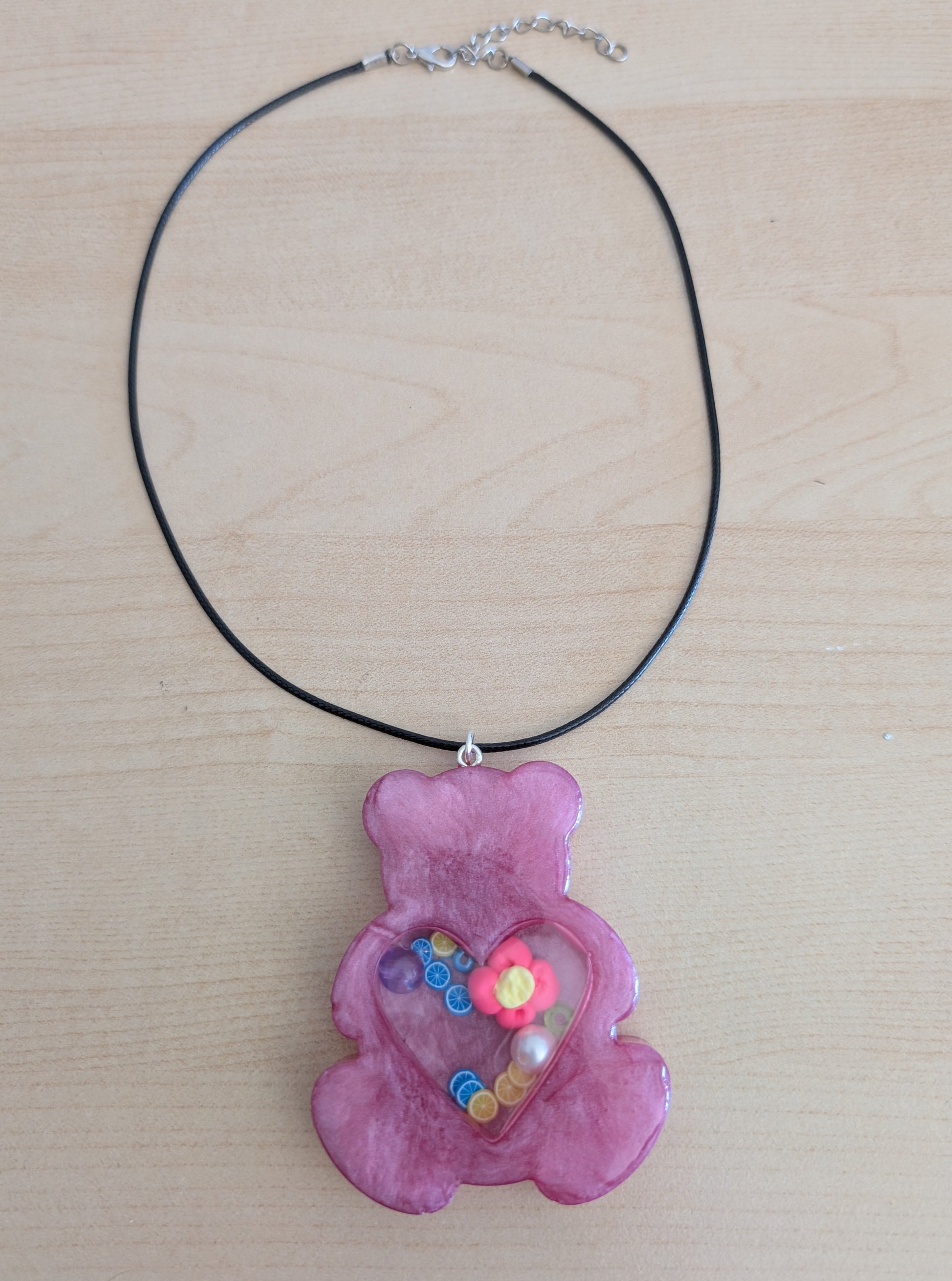 Necklace - 17.5 inches resin shaker bear on black leather cord with clasp