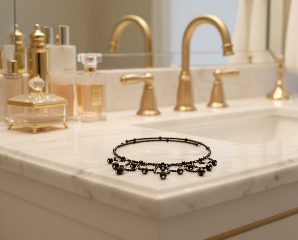 Make a bold statement with this striking black memory wire choker that effortlessly elevates any look. Adorned with shimmering crystal beads and delicate seed beads, this piece delivers sophisticated sparkle in a compact, wearable design. The memory wire construction automatically adjusts to fit your neck perfectly—no clasps or closures needed—while the ultra-lightweight 0.43 oz weight ensures all-day comfort. With a 4-4.5 inch coil diameter, it sits beautifully at the base of your neck for maximum impact. From casual outings to special occasions, this versatile choker is your go-to accessory for instant elegance and confidence.