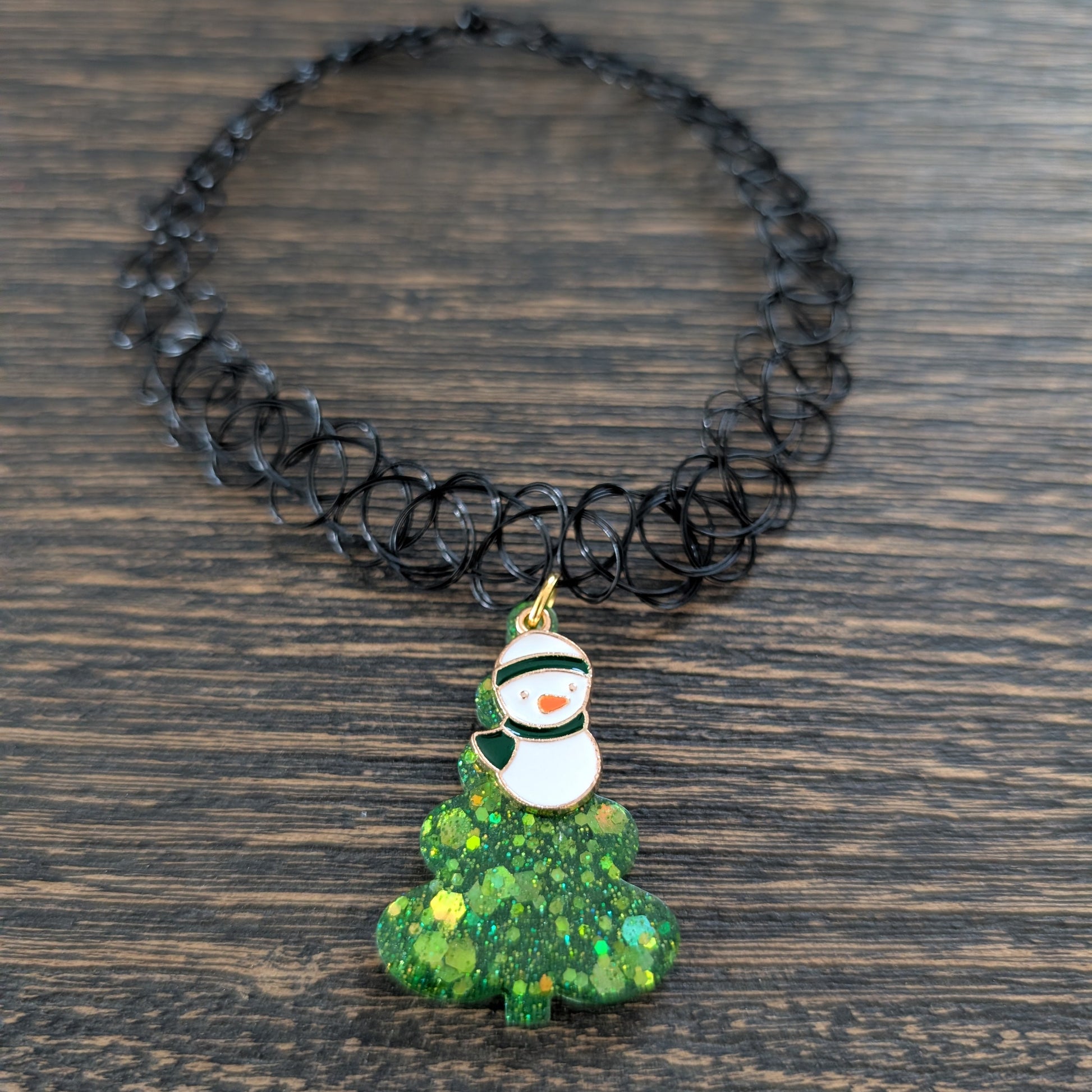 Necklace - Choker Adjustable Stretchy Elastic Necklace with resin holiday pendant and charm
