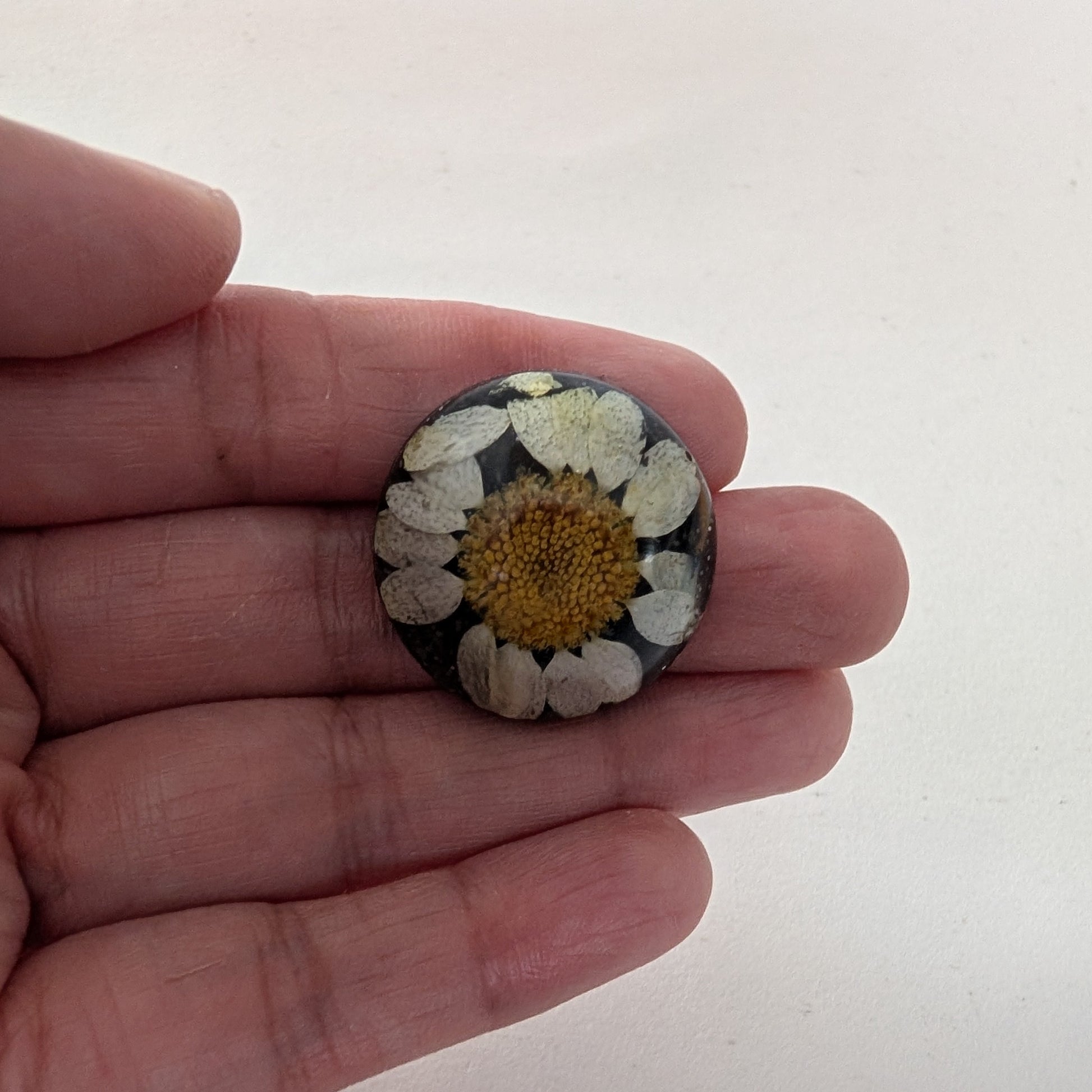 Add a touch of whimsy to any outfit with our 3D dried flower in resin pin. The stunning silver butterfly clutch ensures secure and easy attachment. Let this pin be your new go-to accessory for an elevated and playful look!