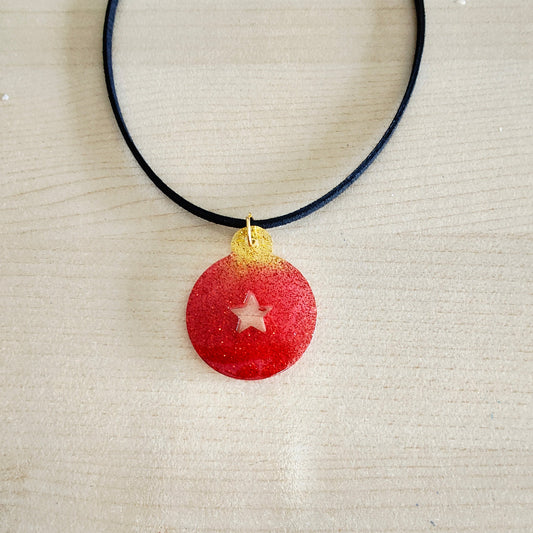 Necklace - 13.5 inches black suede cord with resin holiday pendant